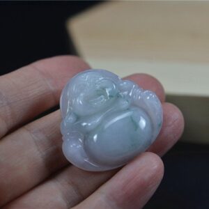 Natural Icy Chinese Jade Laugh Buddha Pendant certified necklace 4247