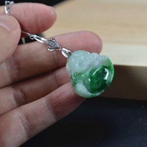 Natural Green Chinese Jade Laugh Buddha Pendant certified necklace 4756
