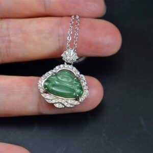 Amulet Natural Real Green Chinese Jade Buddha Pendant certified necklace 4765