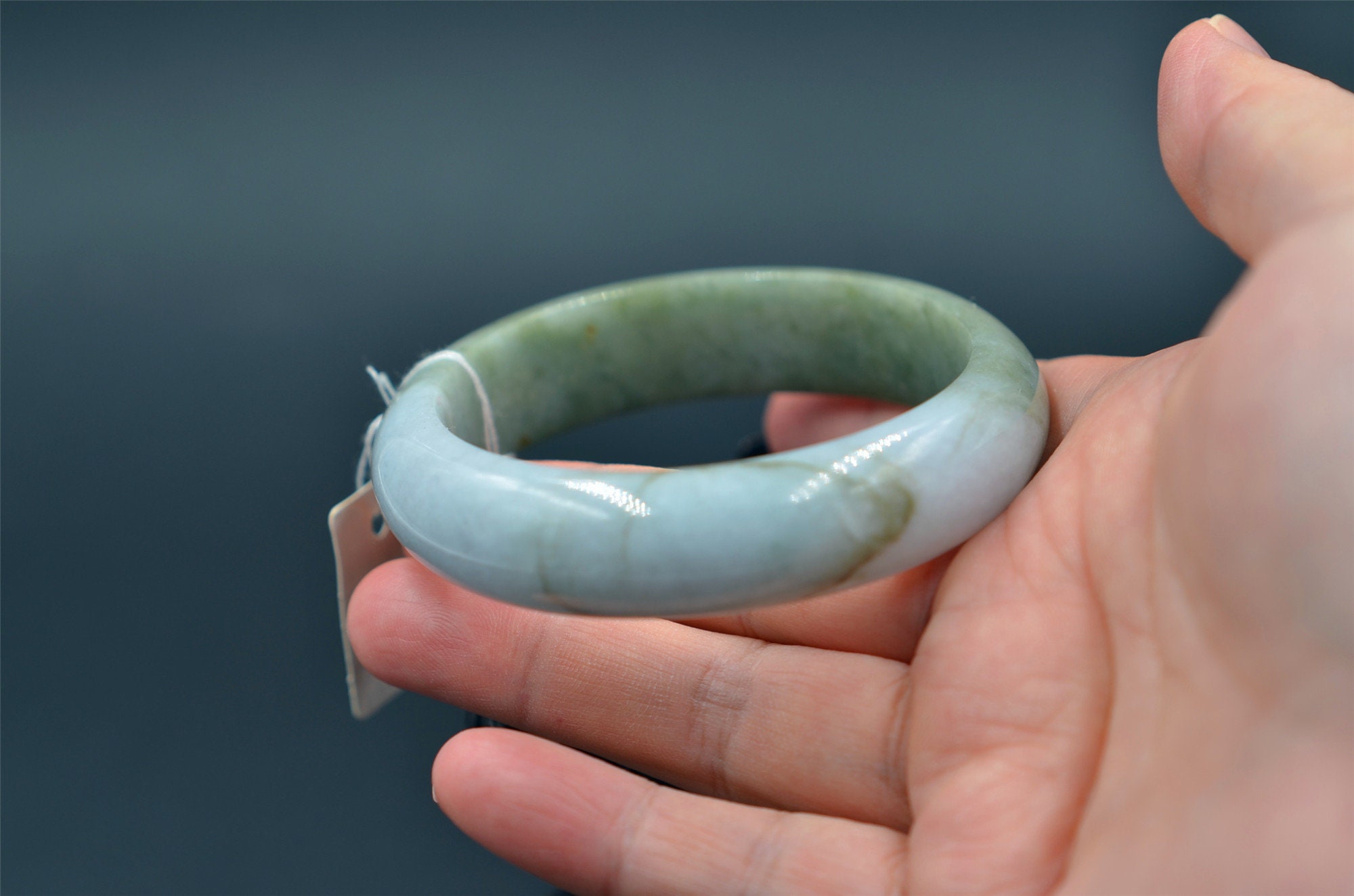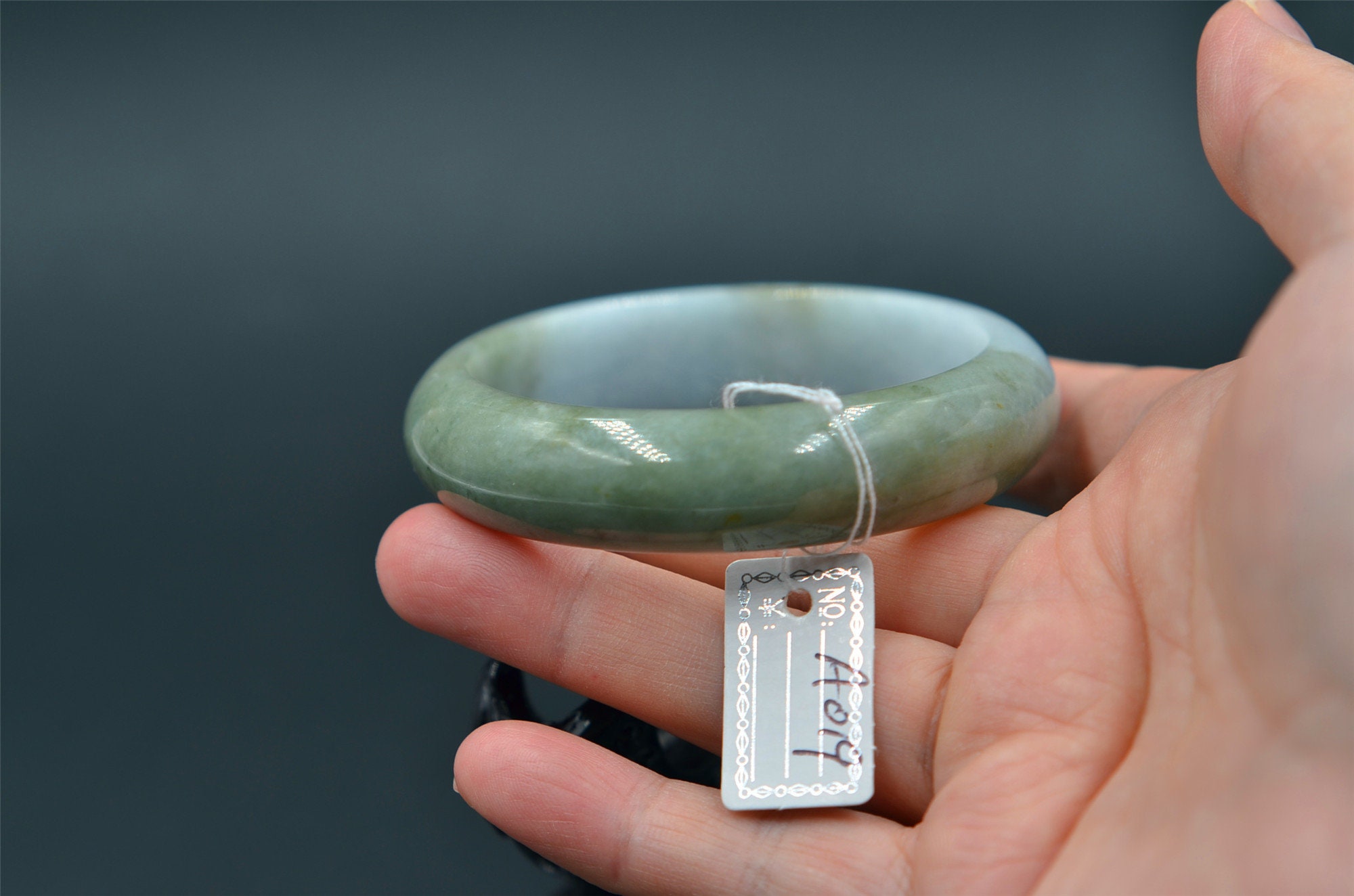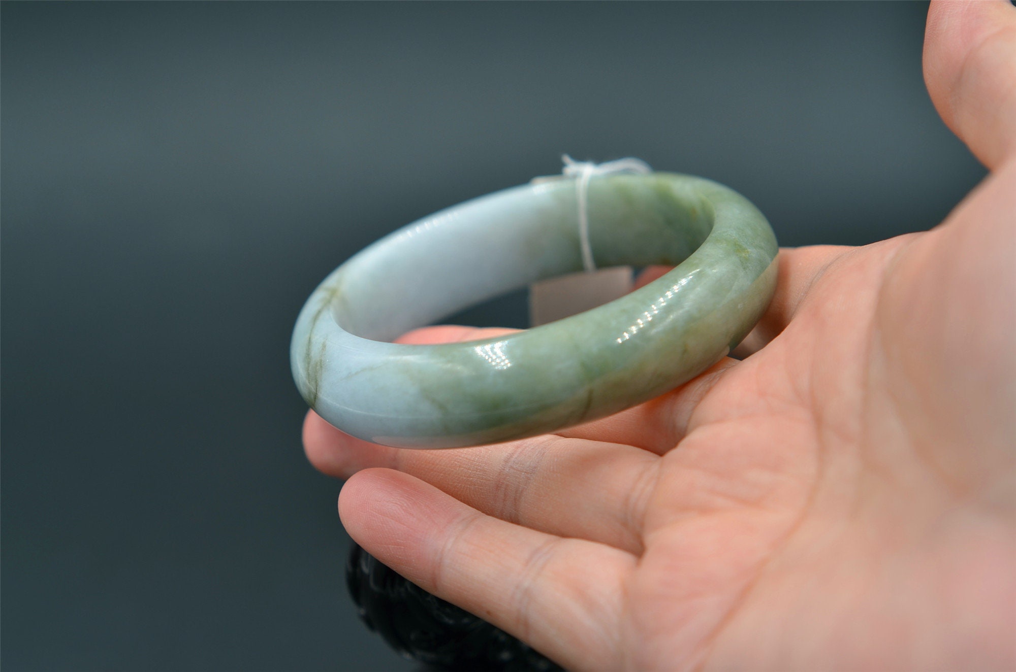 this is a grade-A jade bangle, natural jade has born stone lines, please zoom in and watching the details.