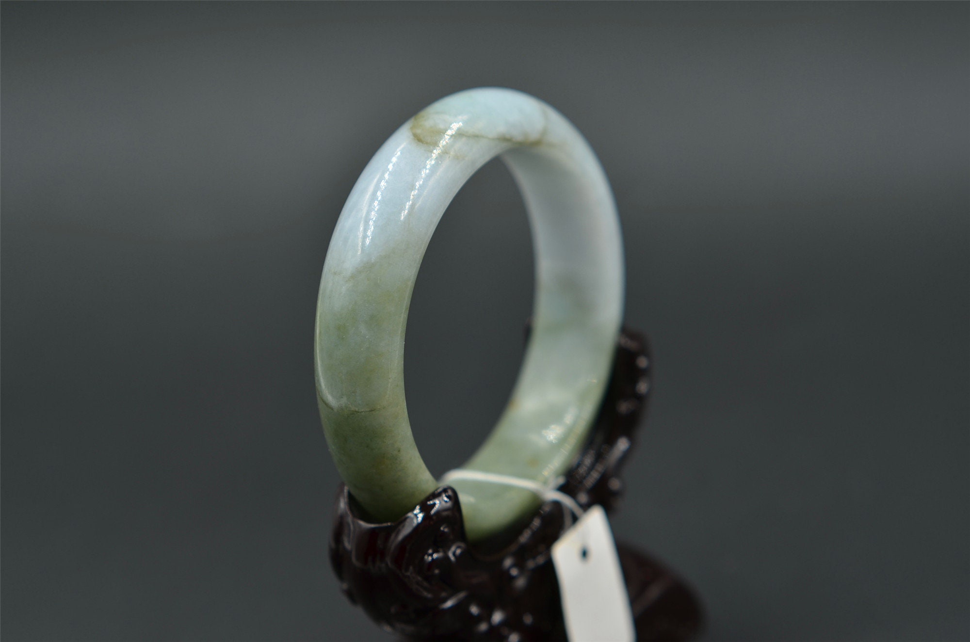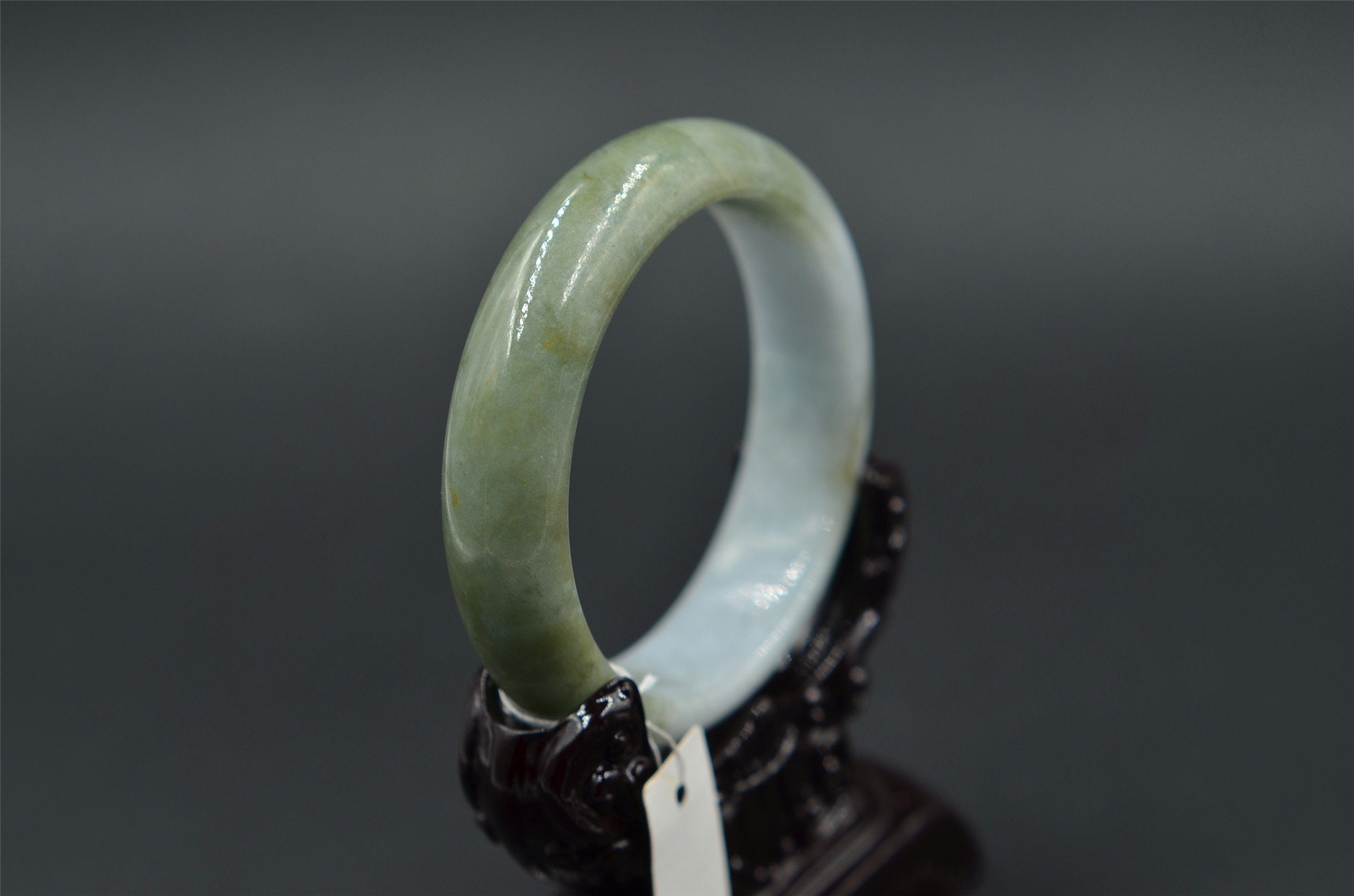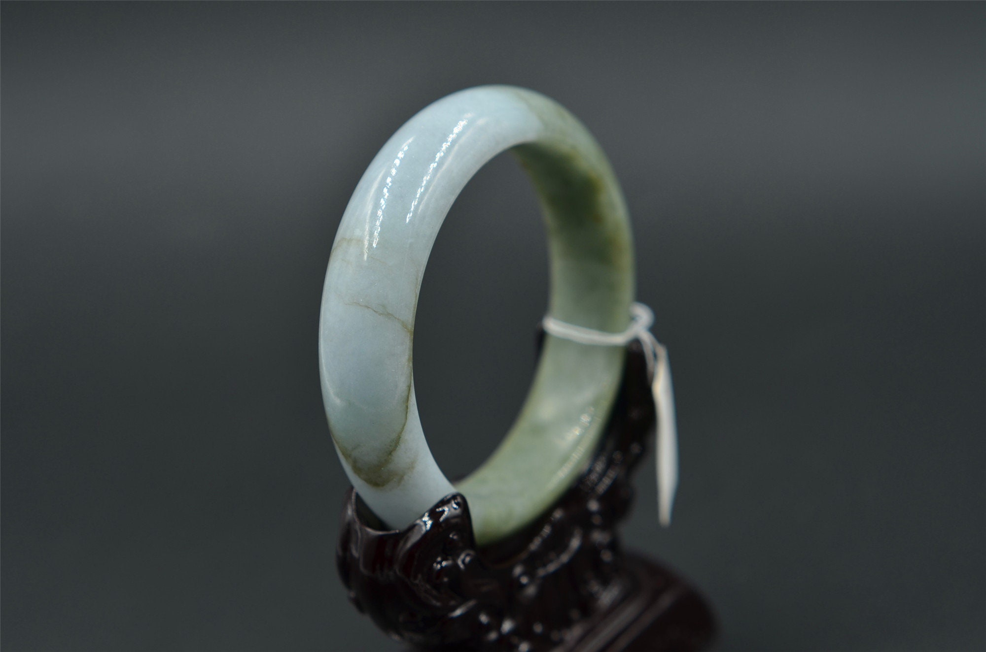 this is a grade-A jade bangle, natural jade has born stone lines, please zoom in and watching the details.