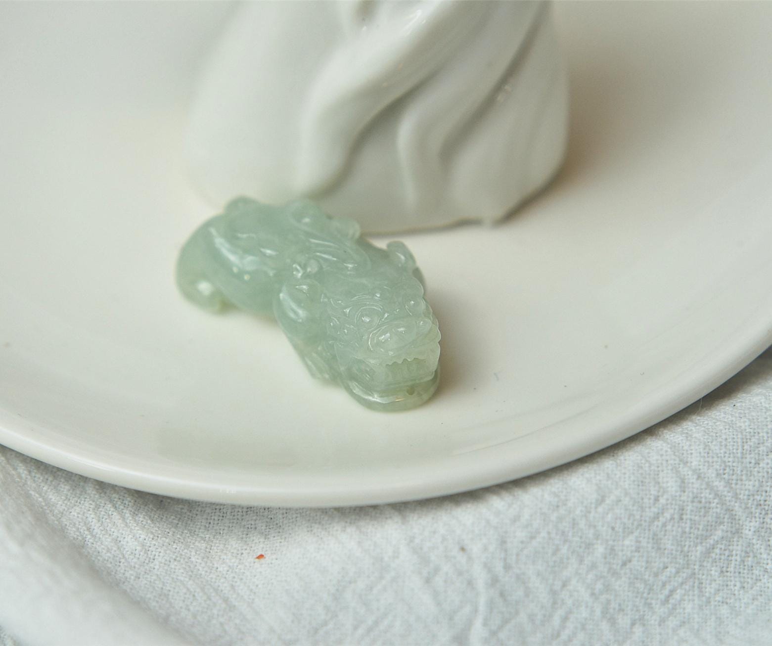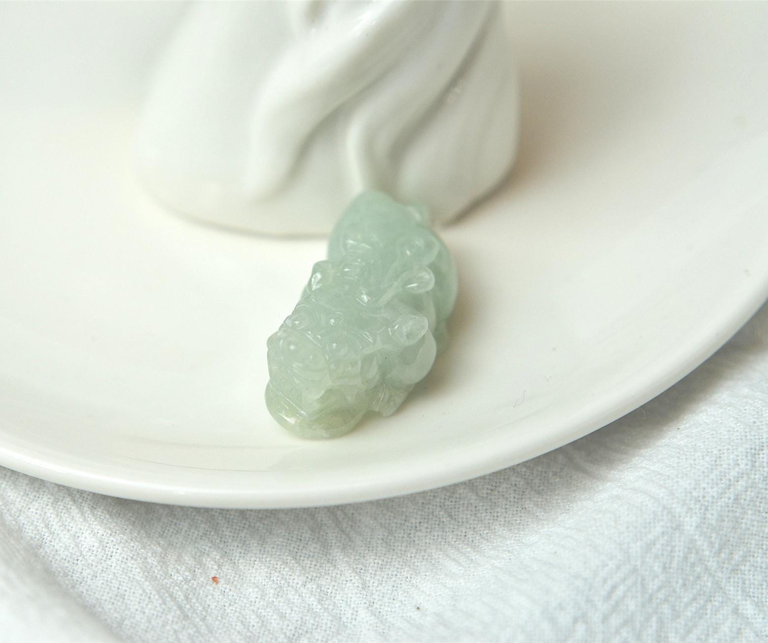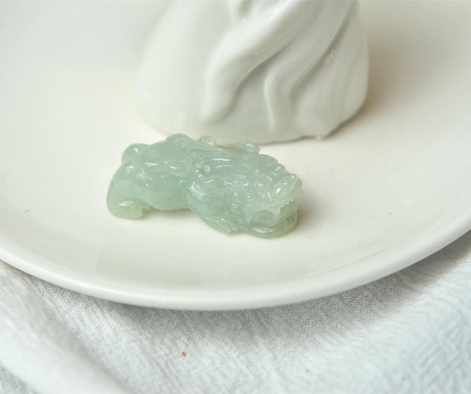 This pixiu jade pendant is 100% natural, untreated, and not dyed Type-A (Grade A) jadeite jade, and is 100% handmade.