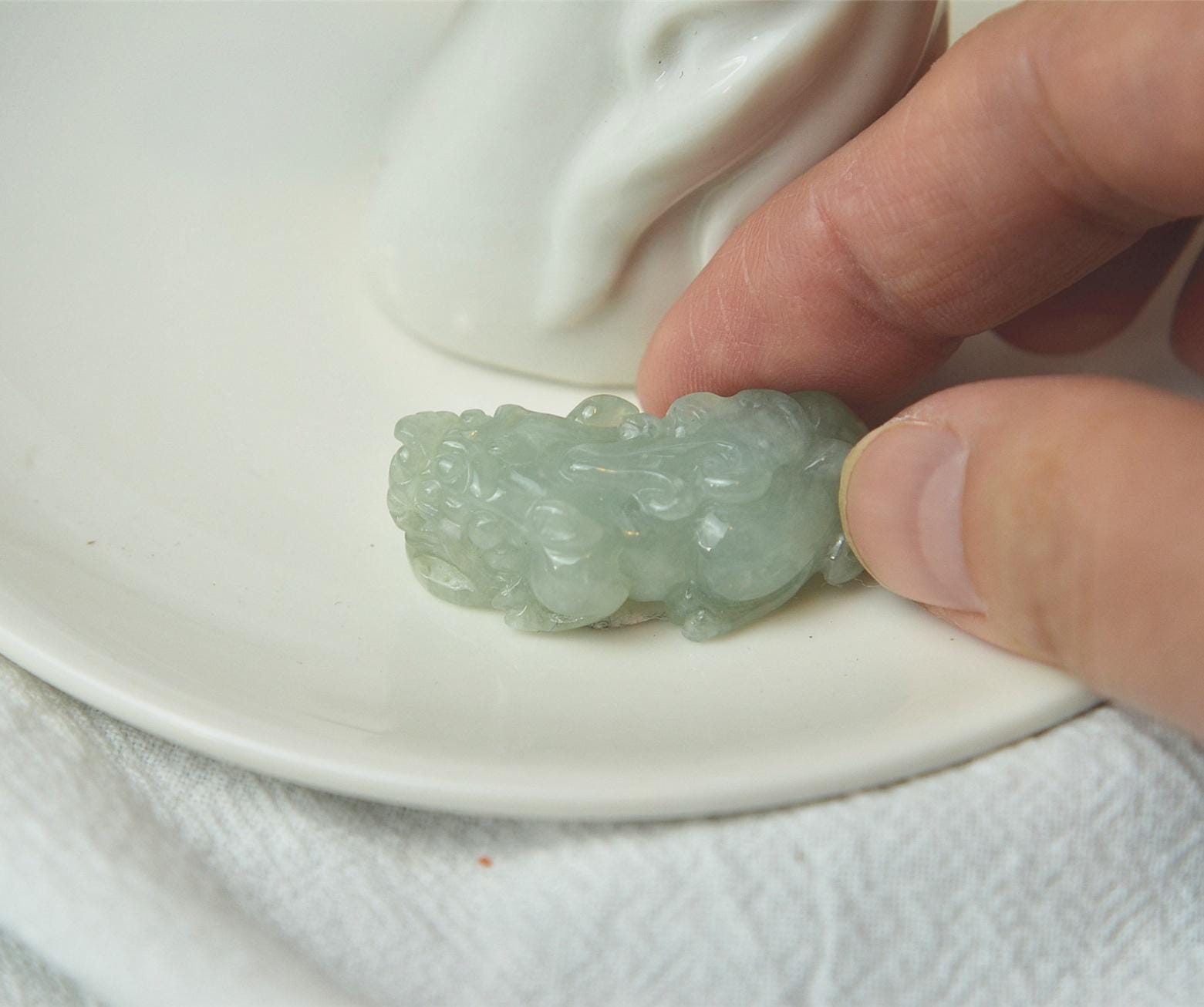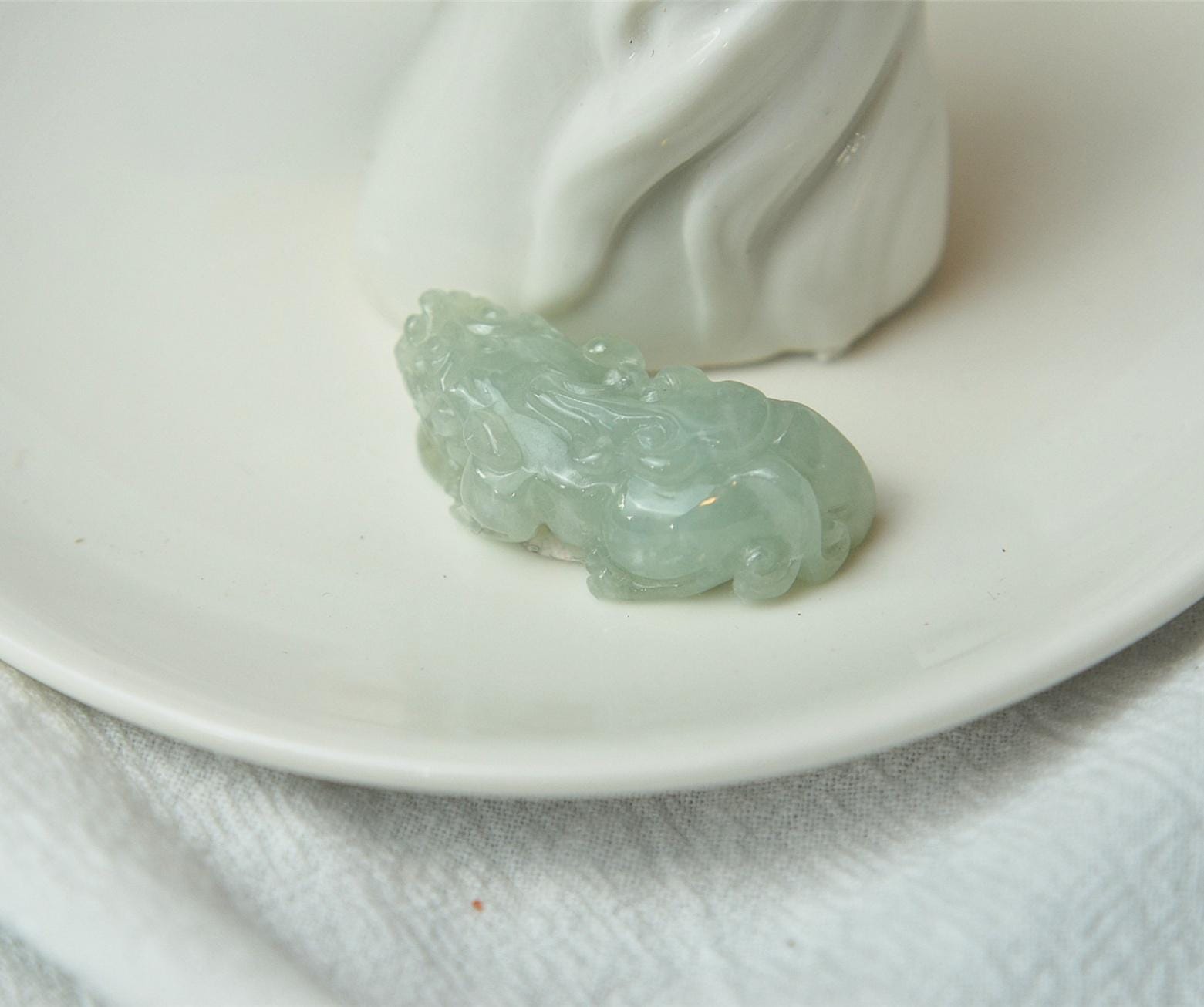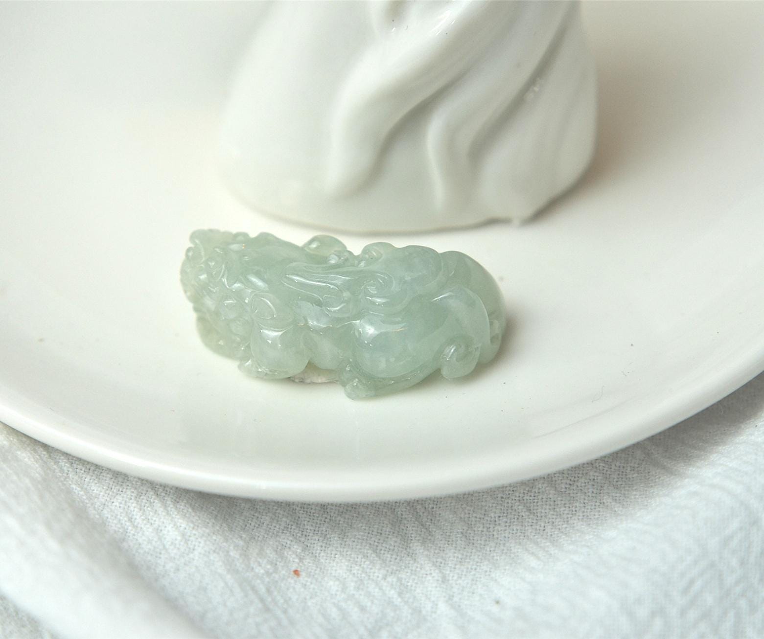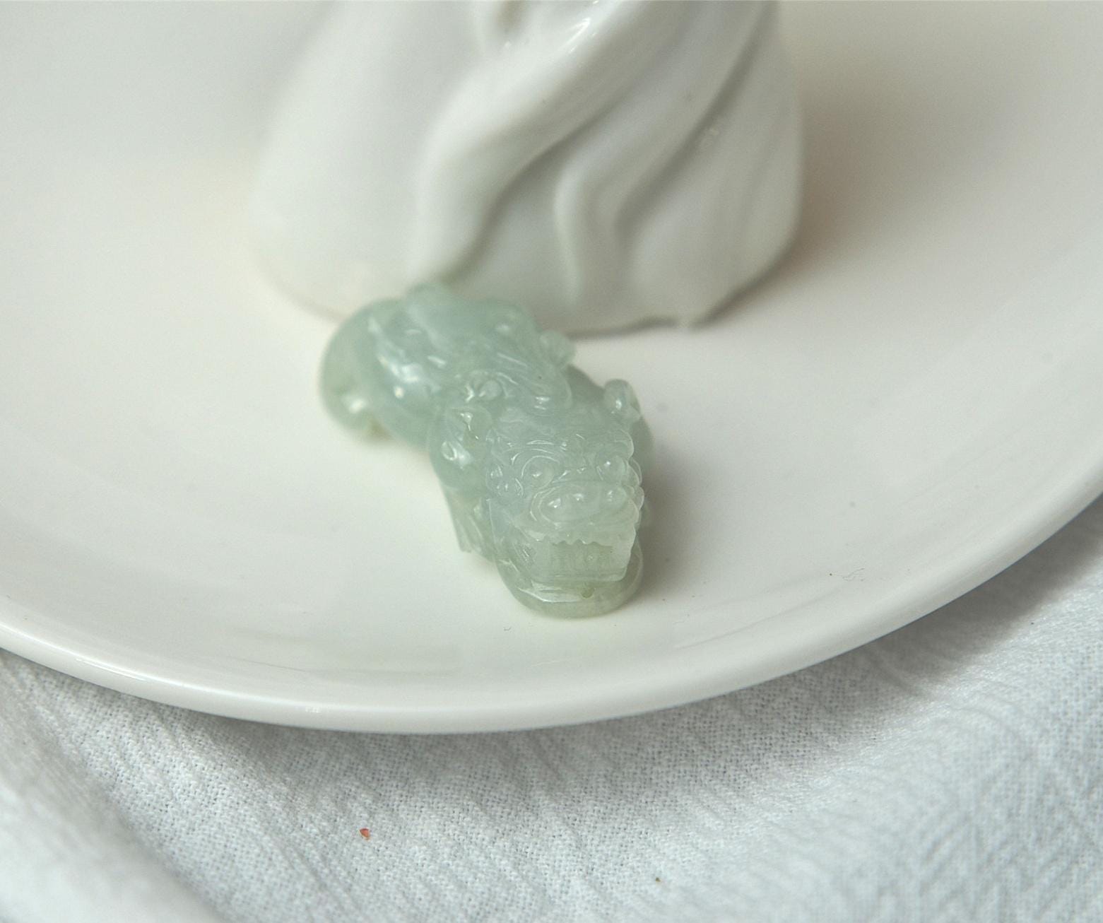 This pixiu jade pendant is 100% natural, untreated, and not dyed Type-A (Grade A) jadeite jade, and is 100% handmade.