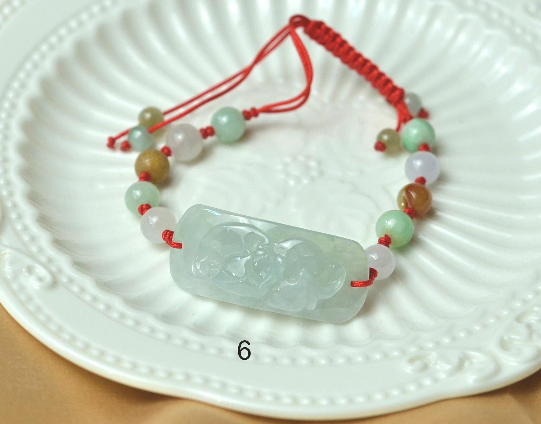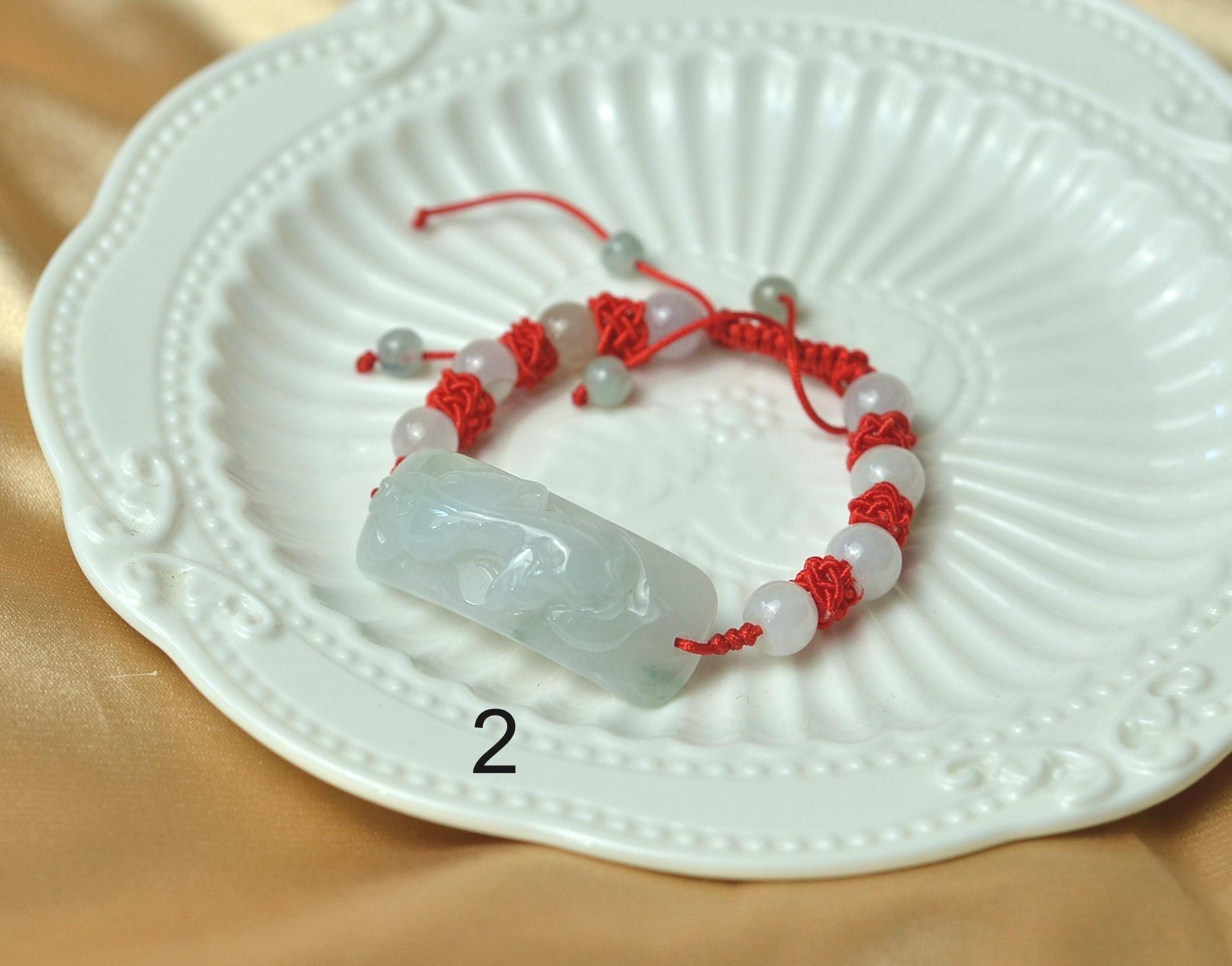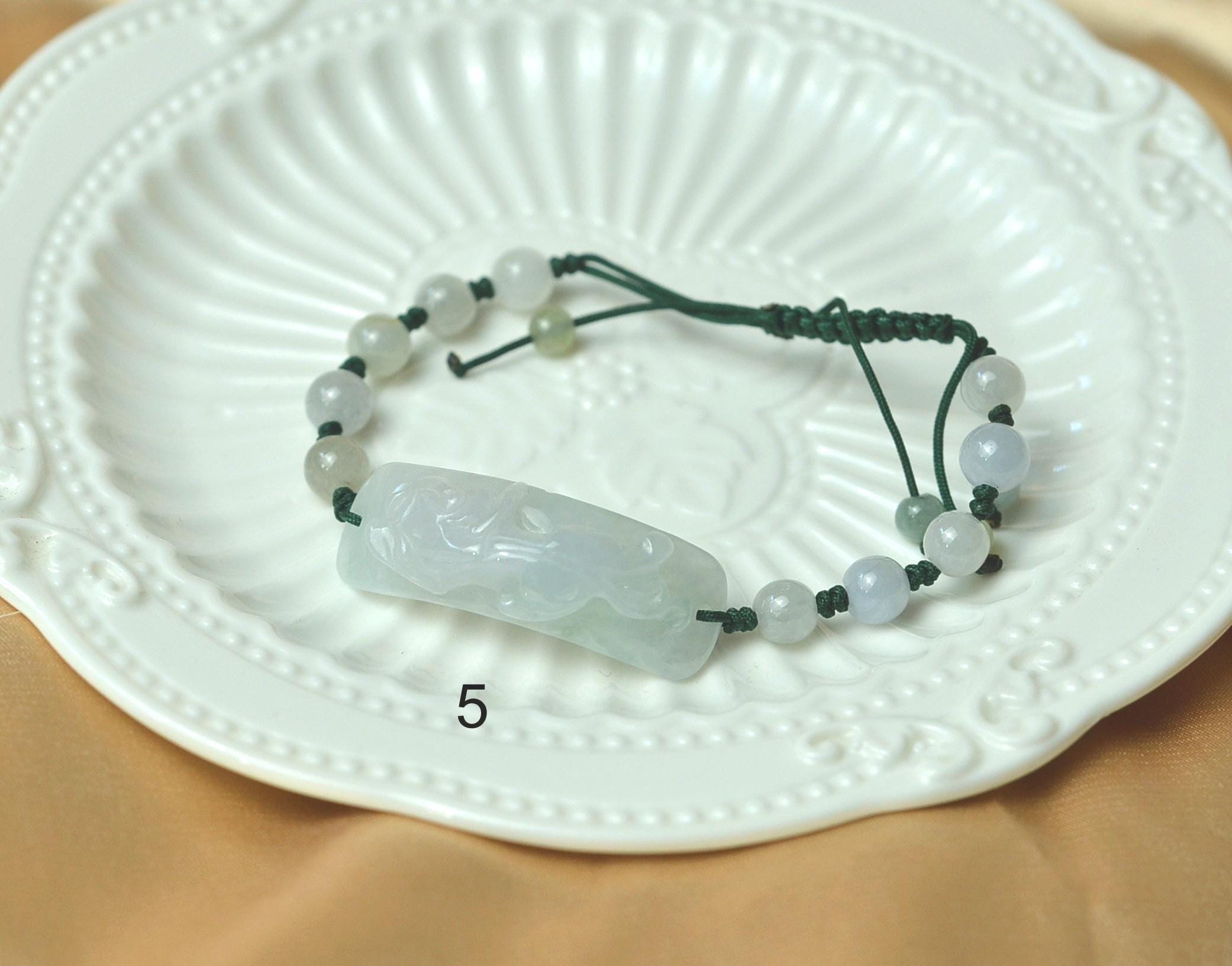 This refined jade bracelet features a beautifully carved centerpiece, complemented by smooth jade beads and a durable adjustable cord. The intricate carving highlights skilled craftsmanship, while the soft jade tones add a sense of calm and elegance.