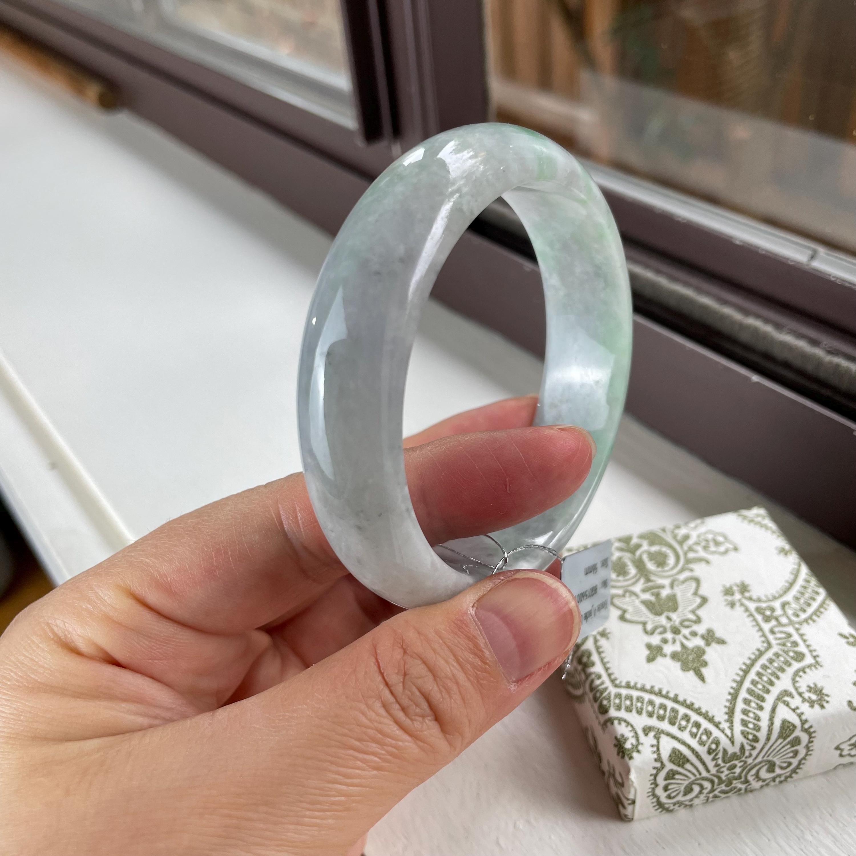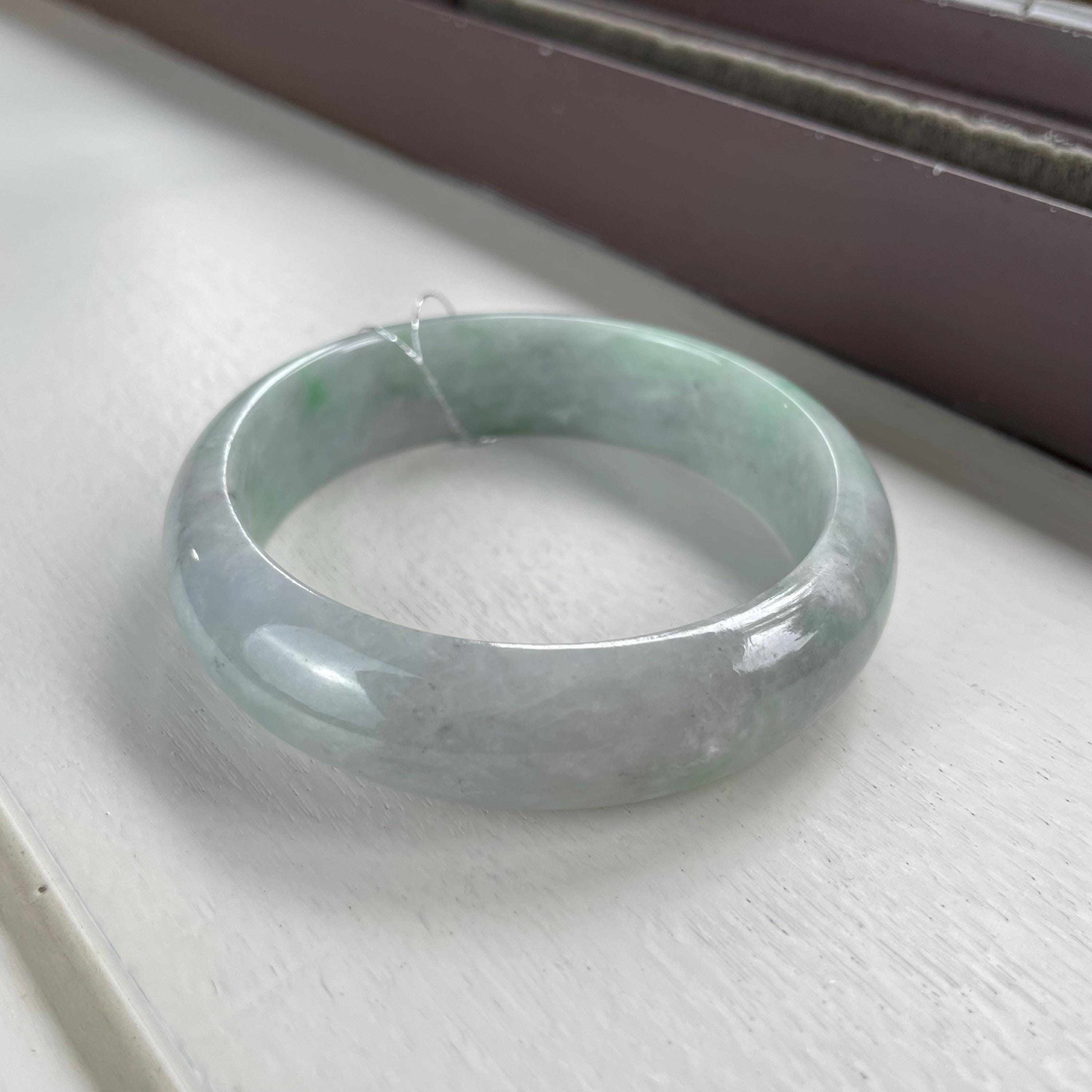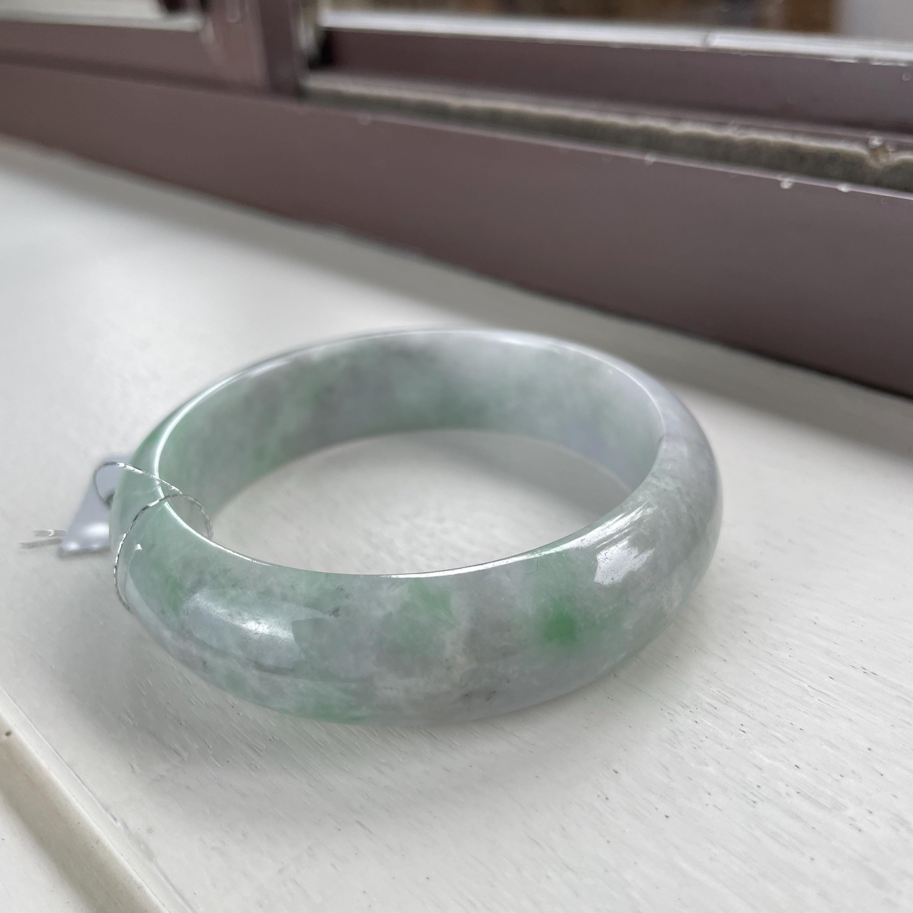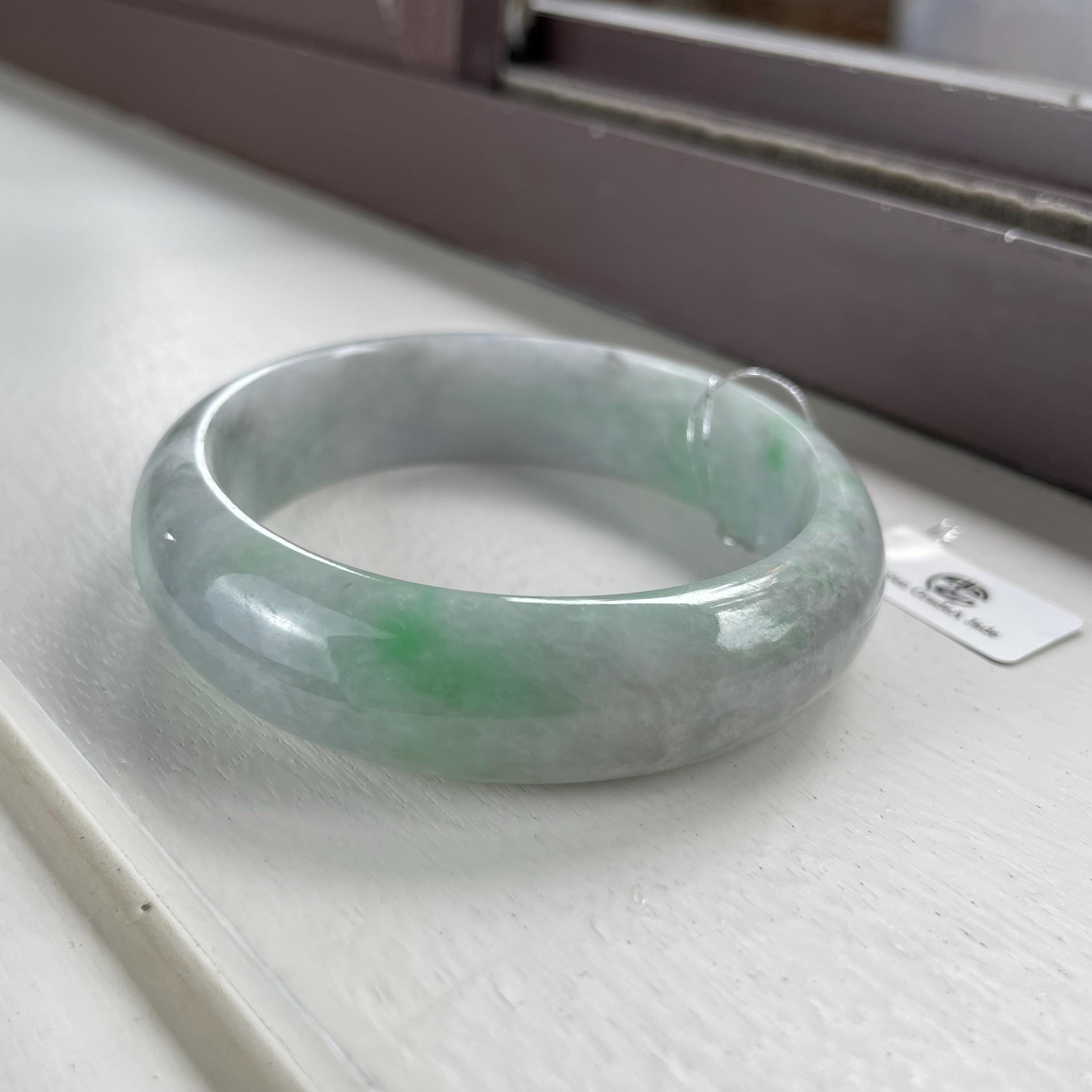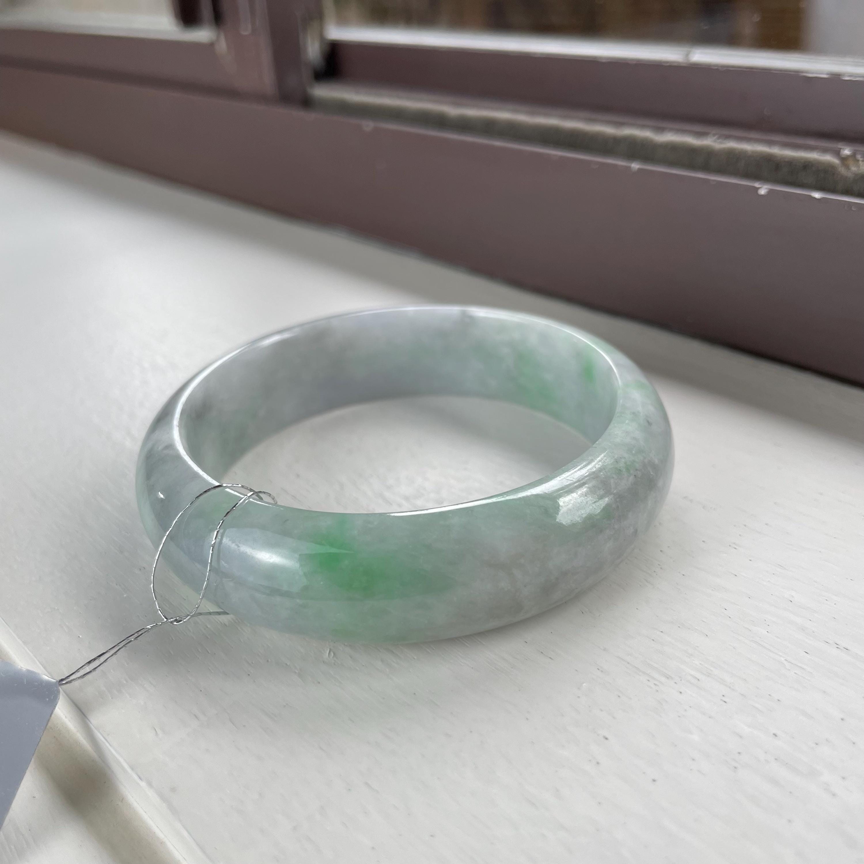 green Chinese jade bangle, grade A jadeite gemstone bangle, Asian jewelry 56mm BG01560017