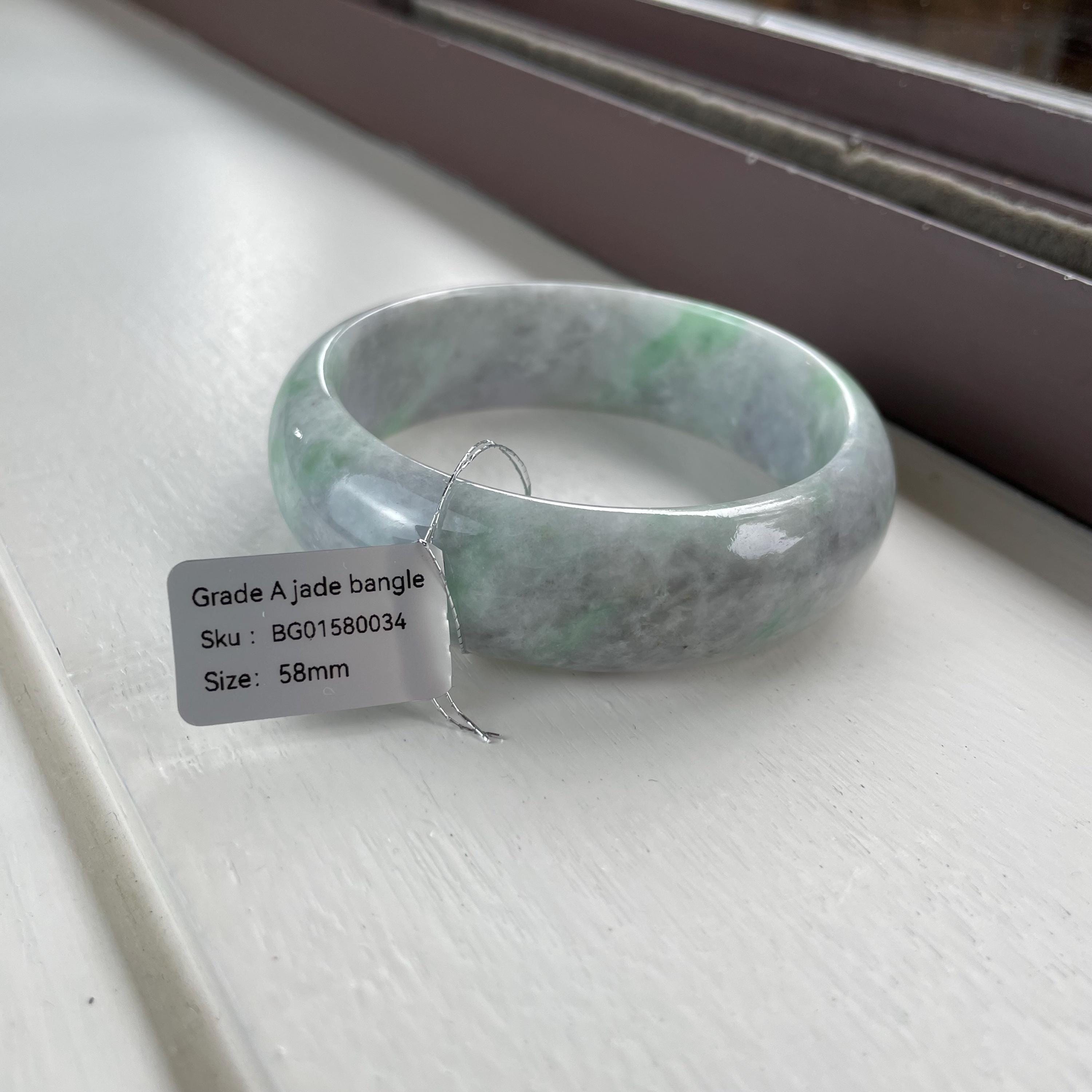 Green Luck Jade Bangle Bracelet grade A jade gemstone bracelet Asian jewelry 58mm BG01580034