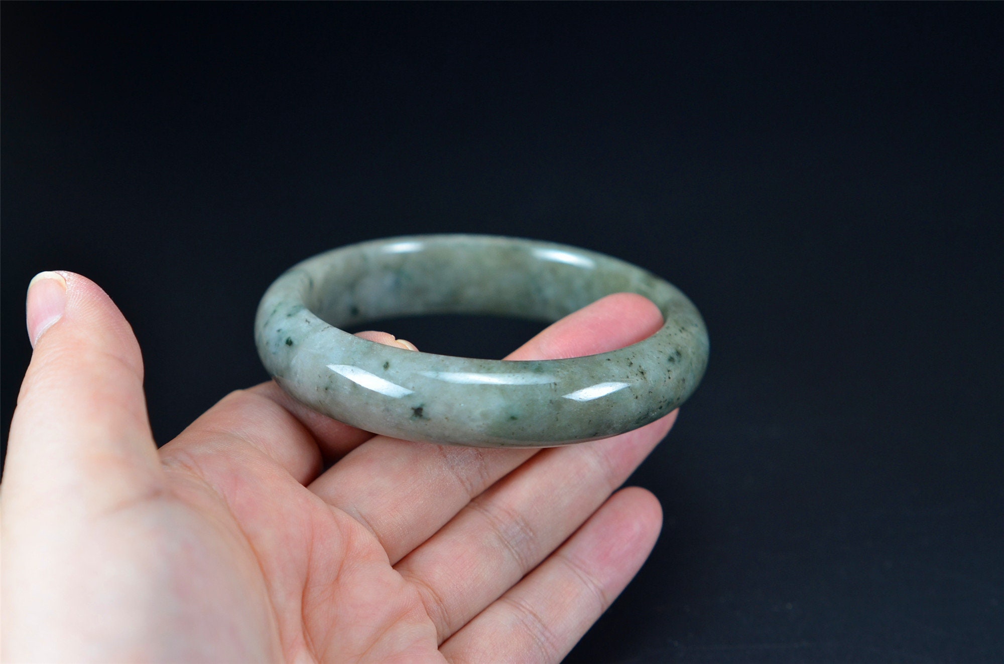Natural, untreated jadeite may contain natural stone veins. Please zoom in to review the details. We accept returns and exchanges.