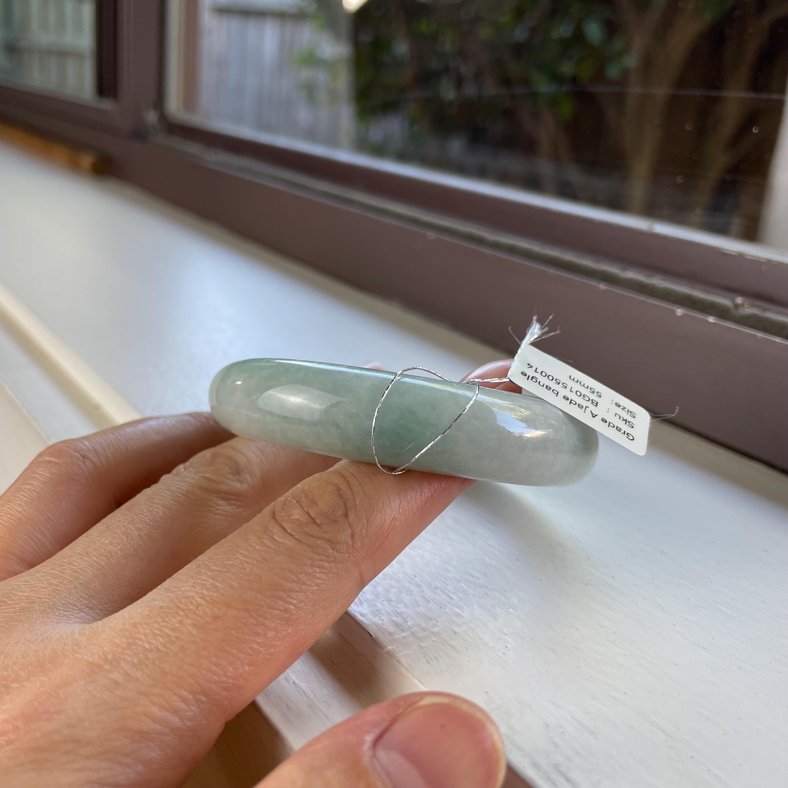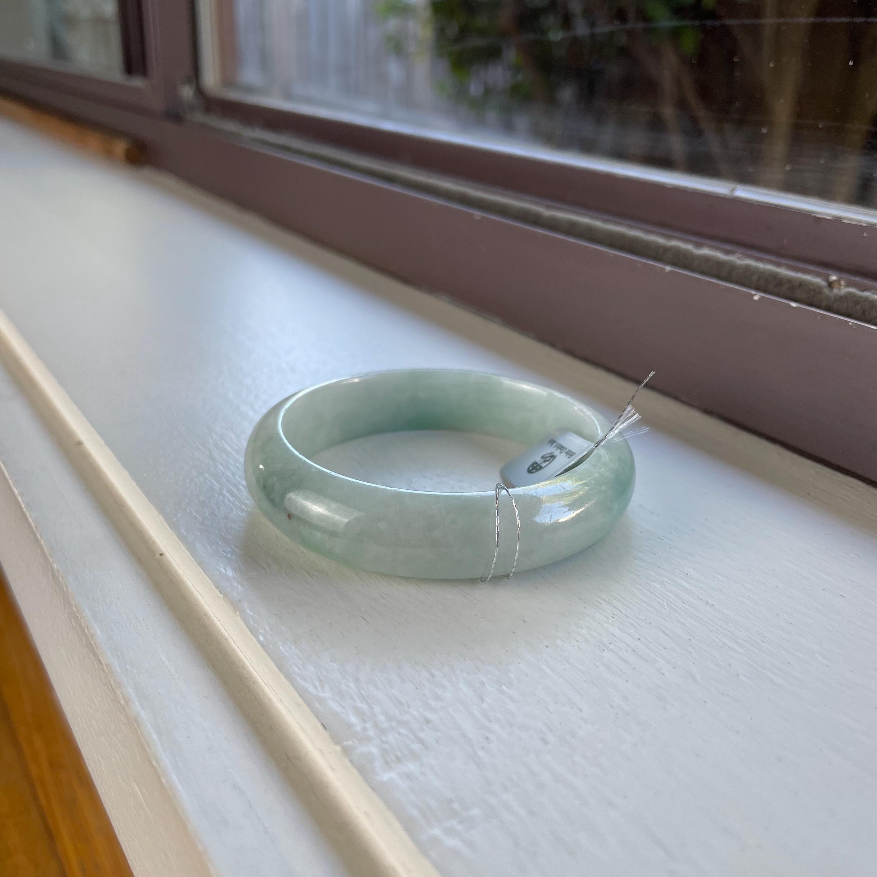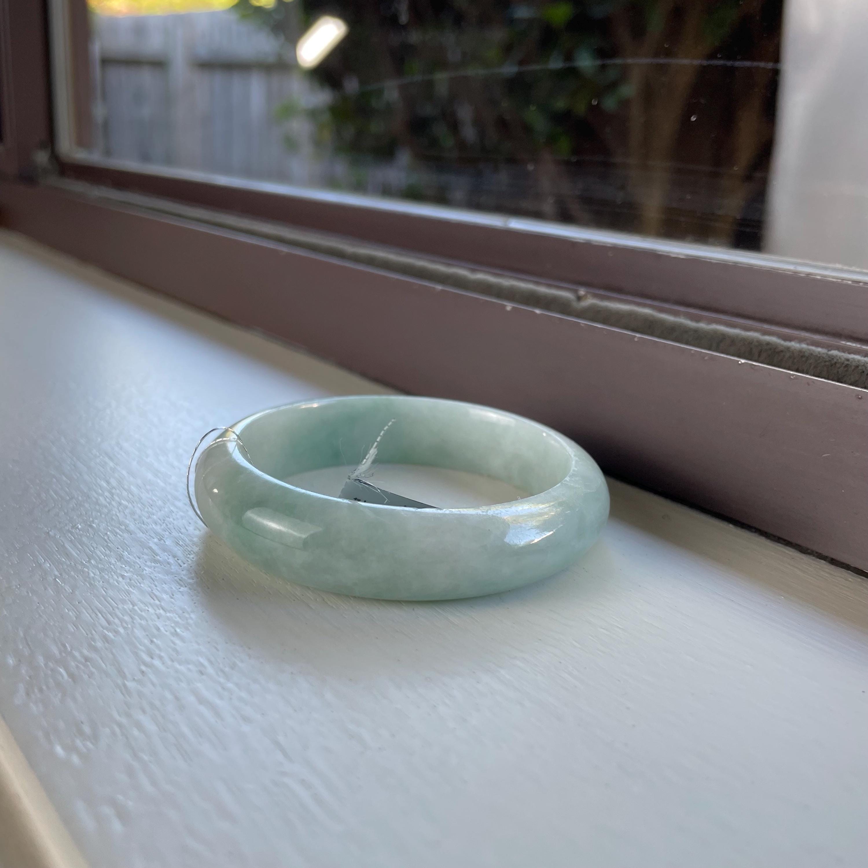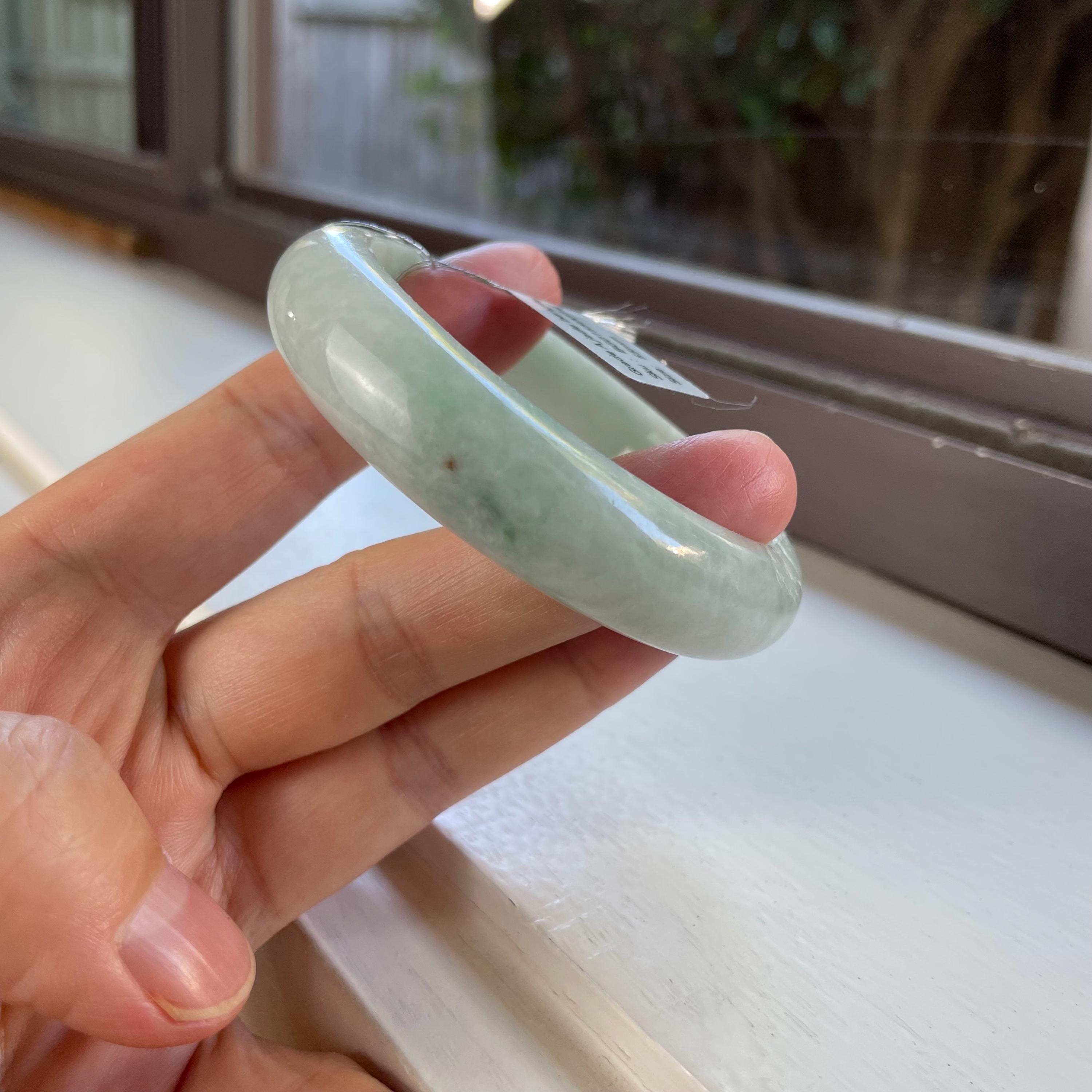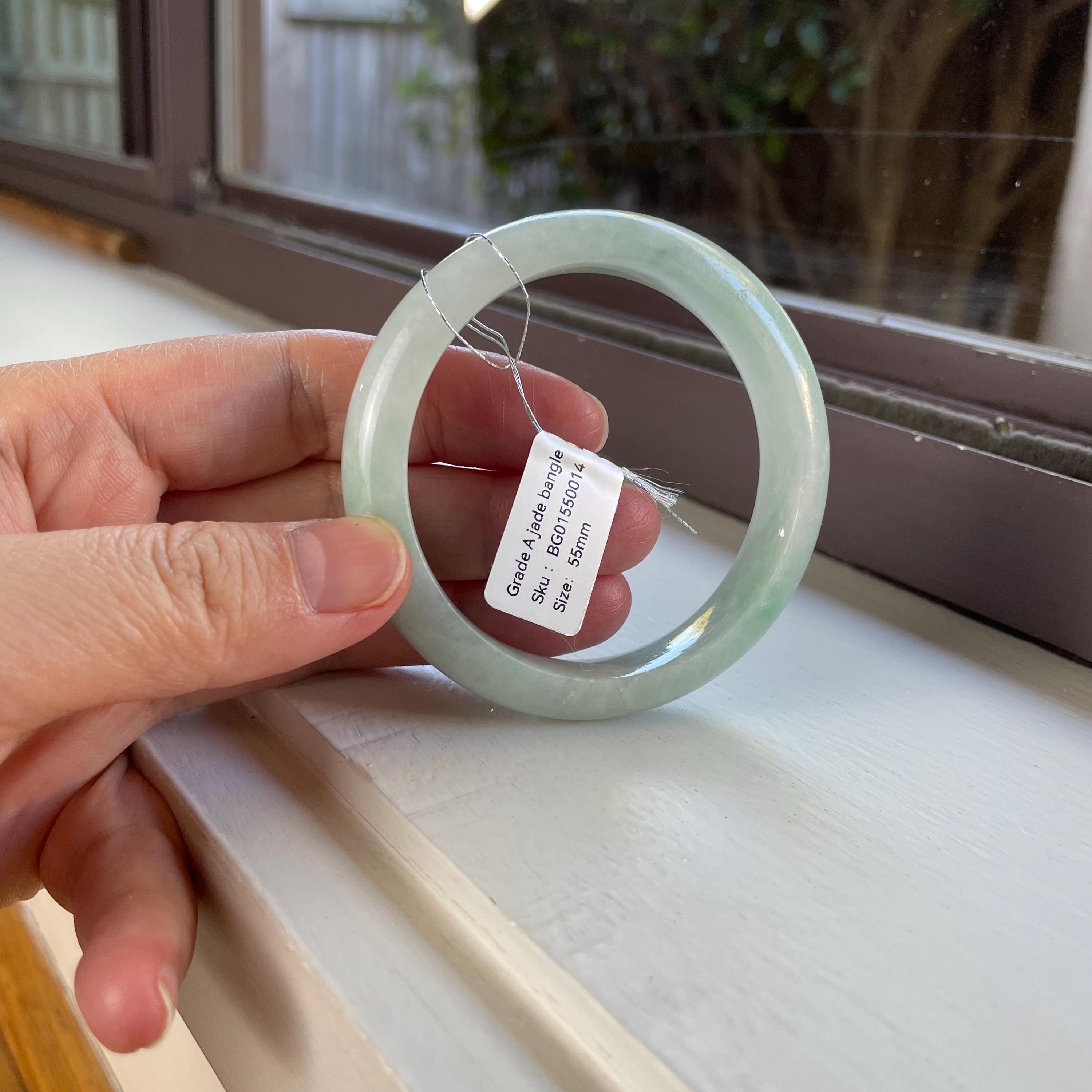 Natural Burma jade bangle, genuine stone, no treatment, Grade A jadeite. Please make sure you ordered the right size. Natural jade has natural stone veins. Please zoom in and watch the details