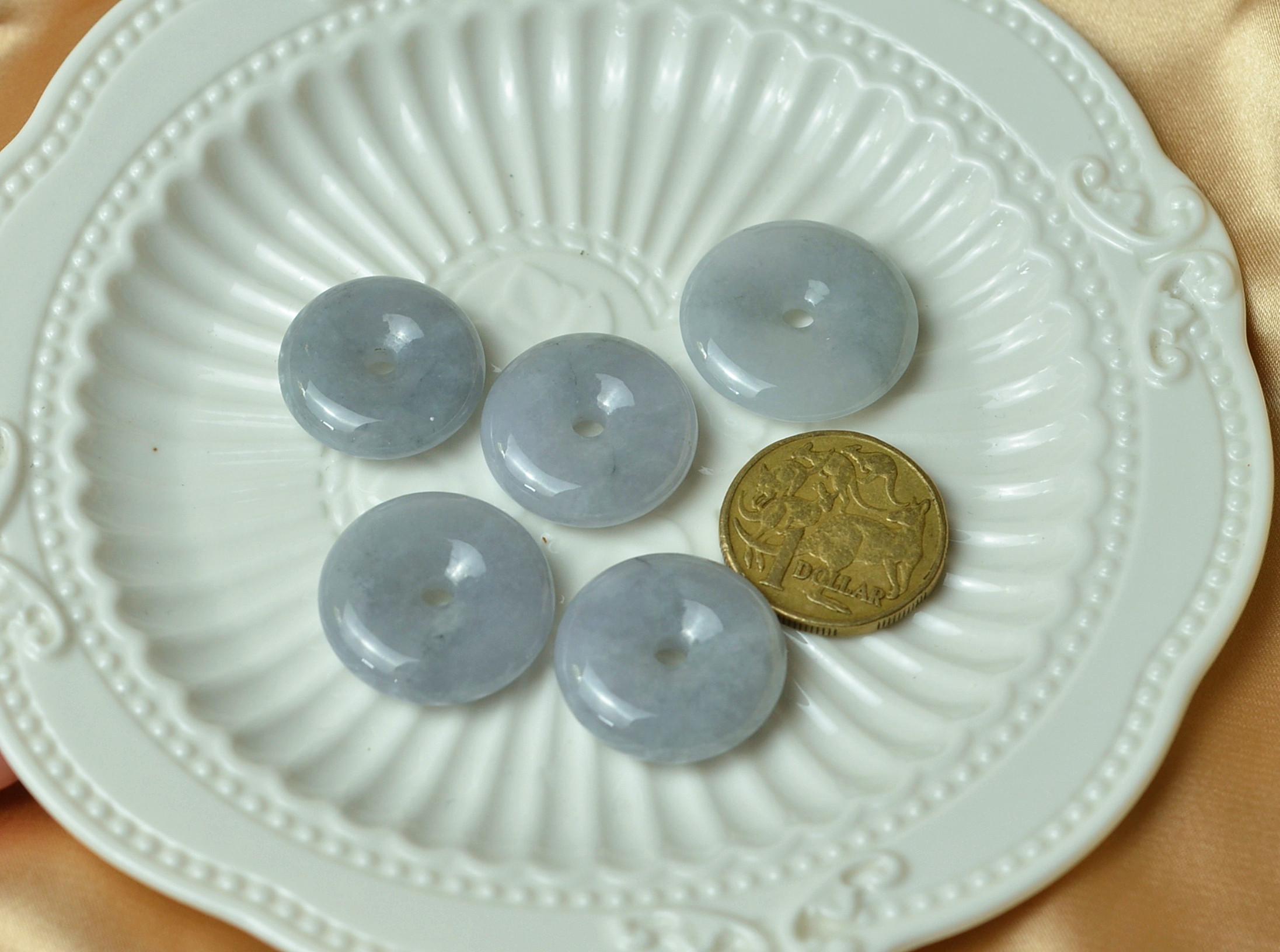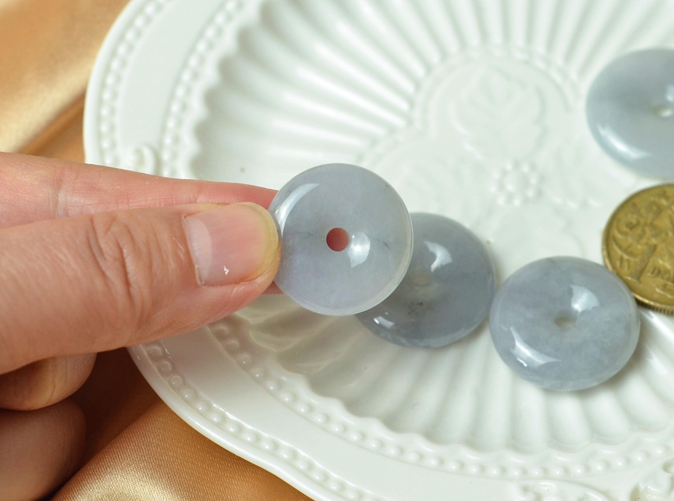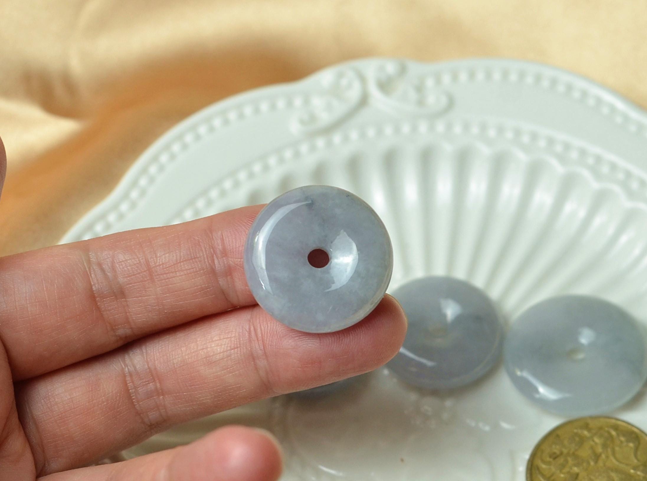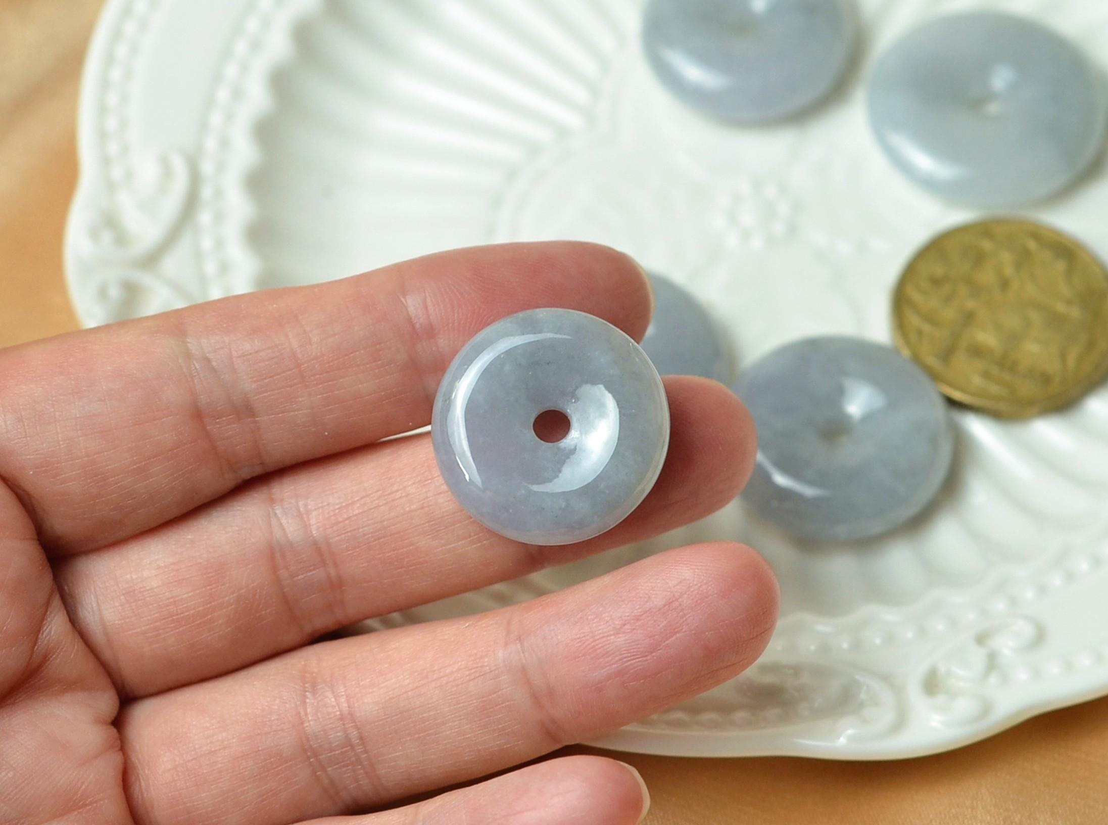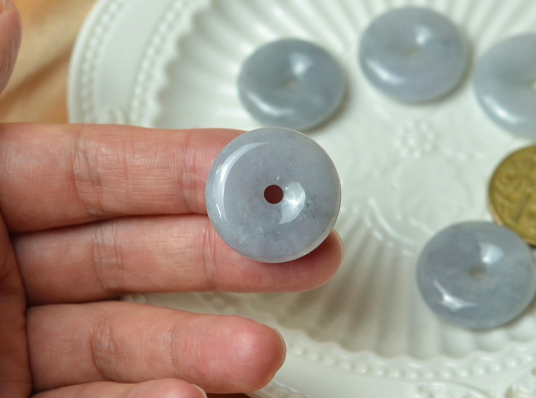 A serene purple jade donut pendant crafted from natural Grade A Myanmar jadeite. With soft lavender-grey tones and elegant transparency, this handmade piece symbolizes peace, protection, and timeless beauty.