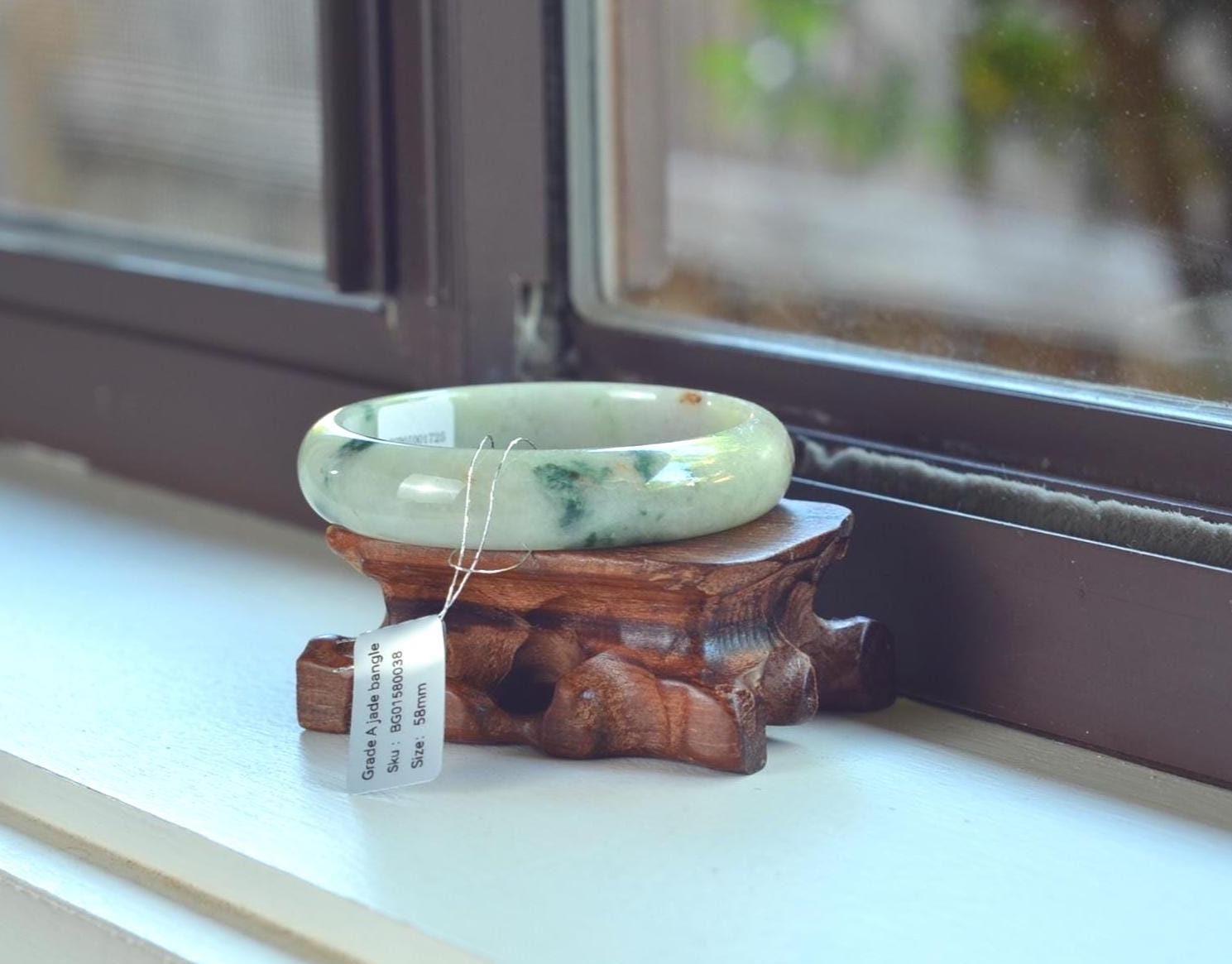 Natural Jade Bangle Green bracelet 58mm BG01580038
