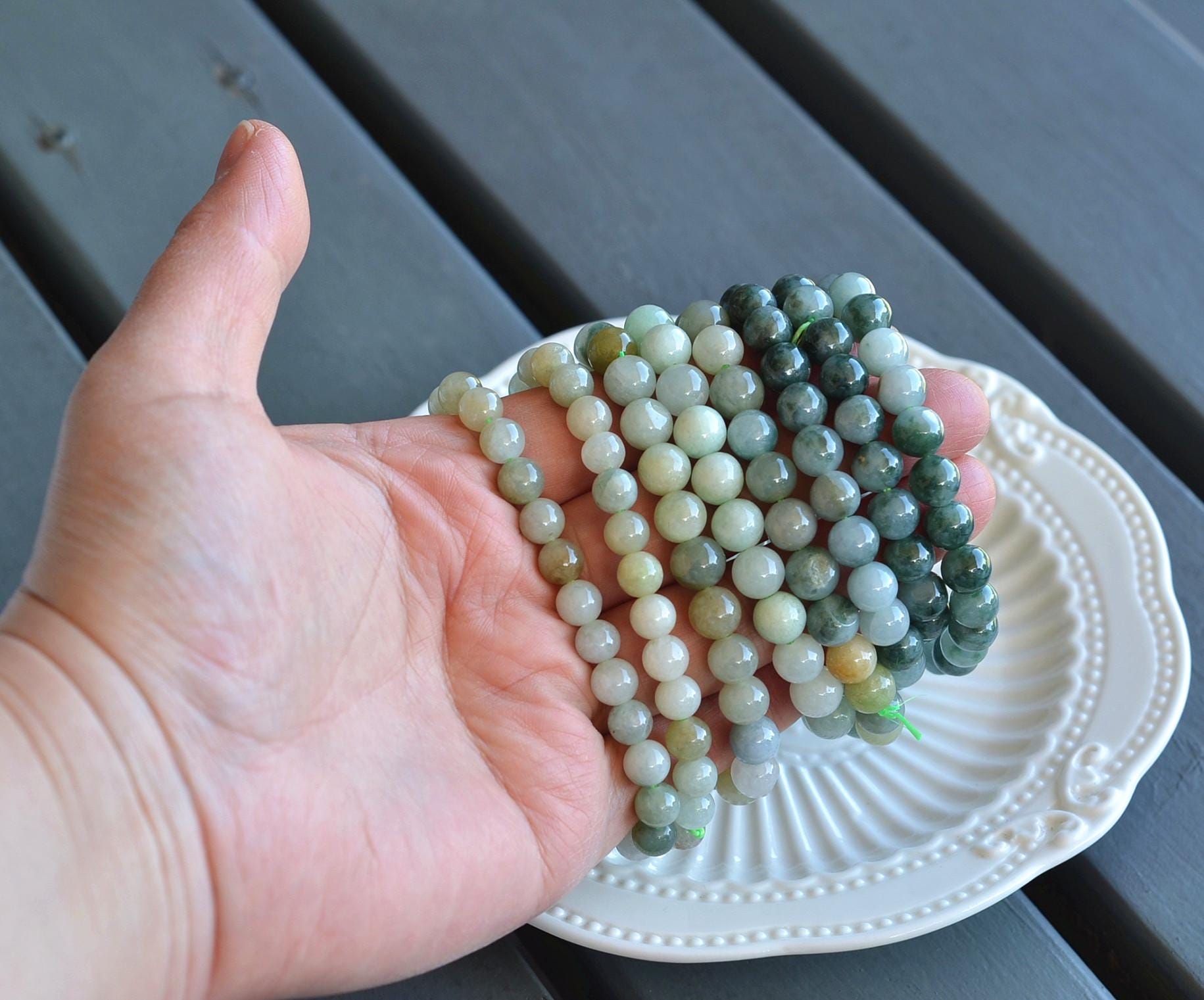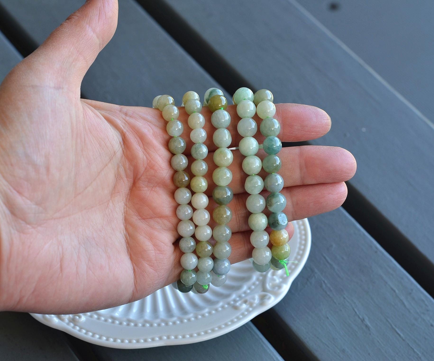 These 8 bracelets each have beads approximately 7-8 millimeters in diameter. They are grouped together based solely on bead size, even though the colors vary.RANDOMLY selected and sent, can’t be chosen.