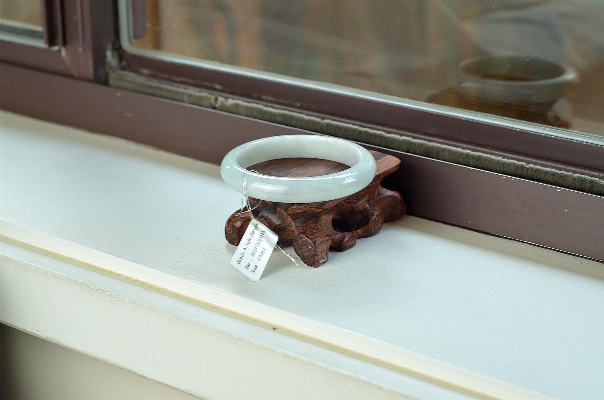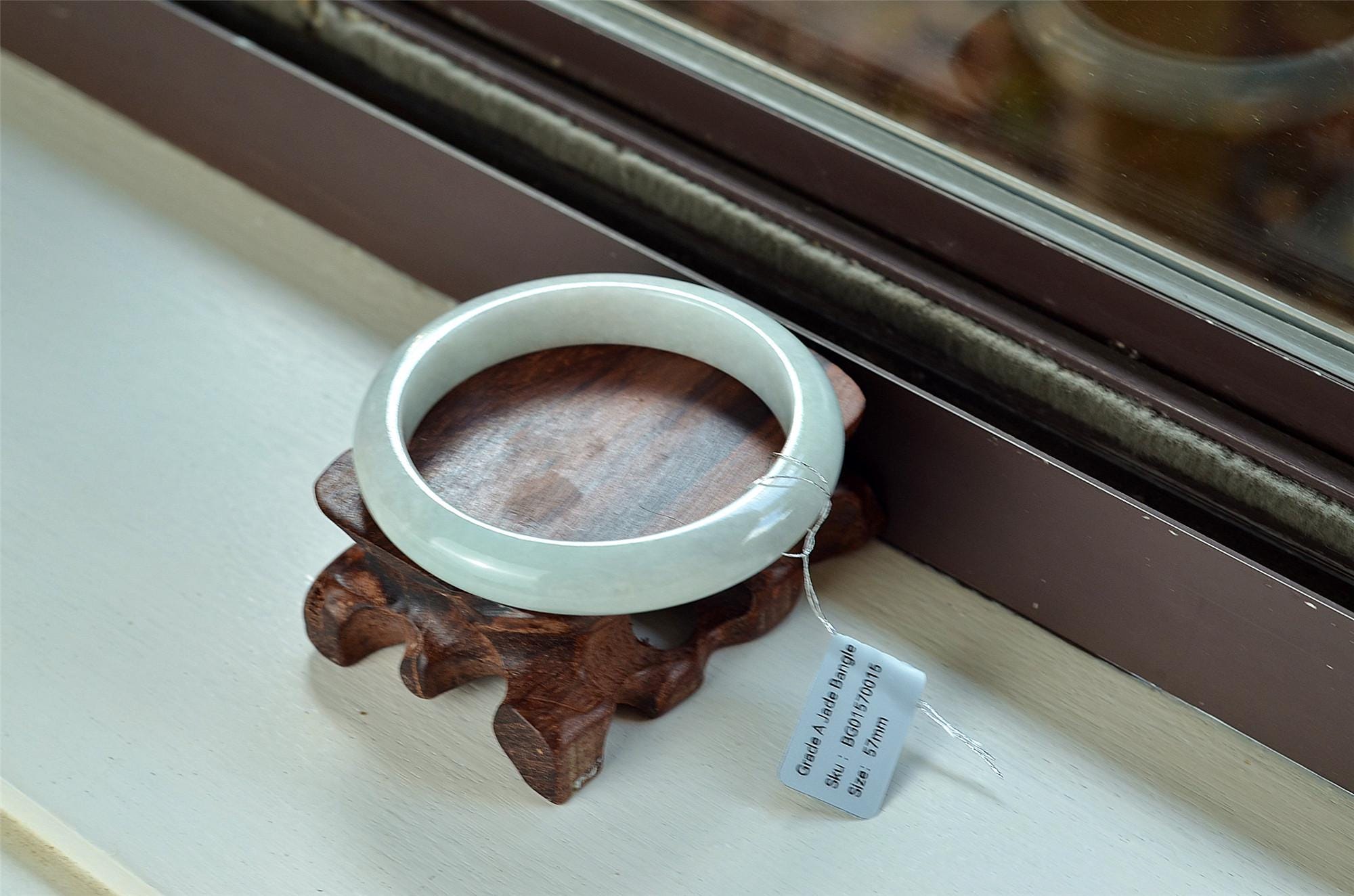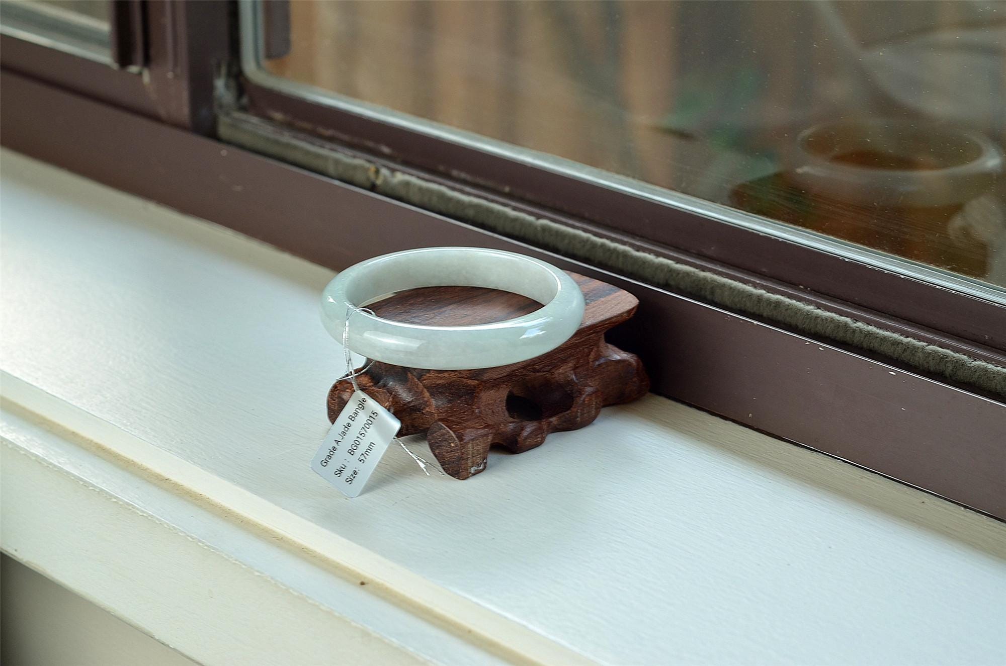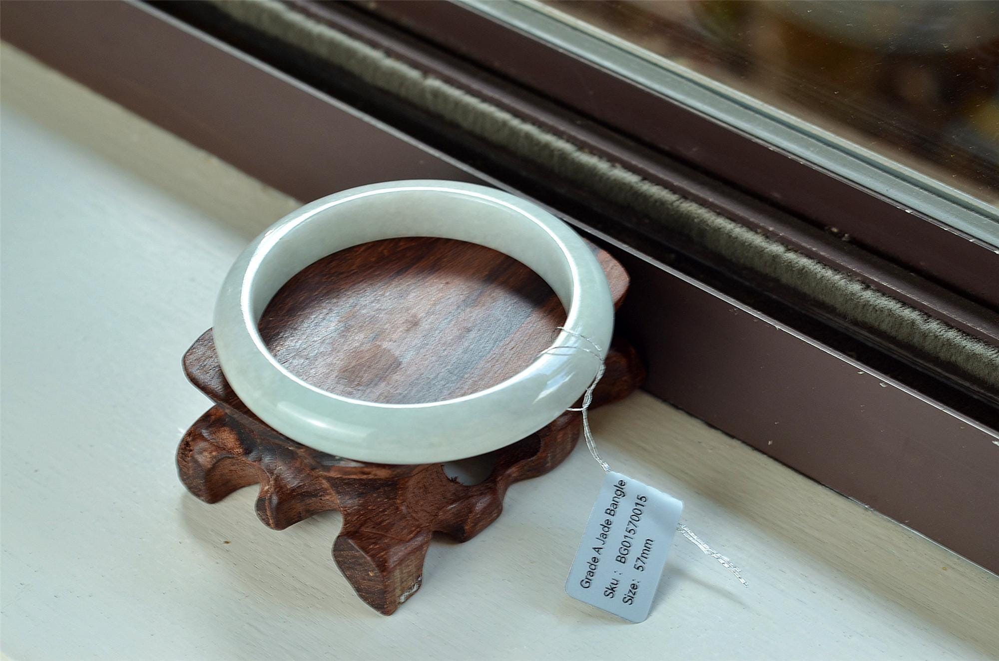 Unique white Jade Bangle Round genuine grade A bracelets 57mm BG01570015