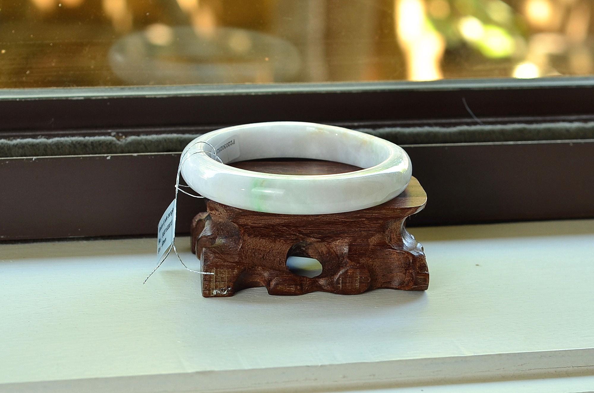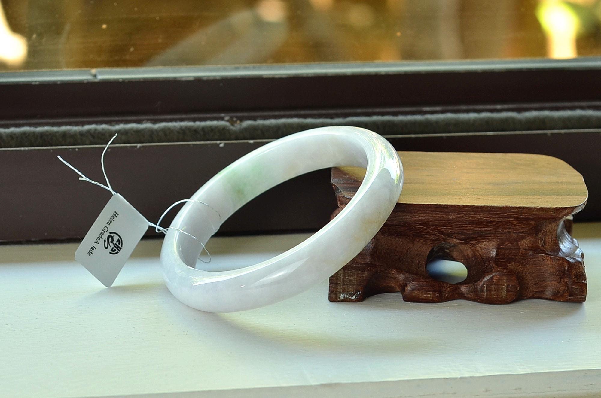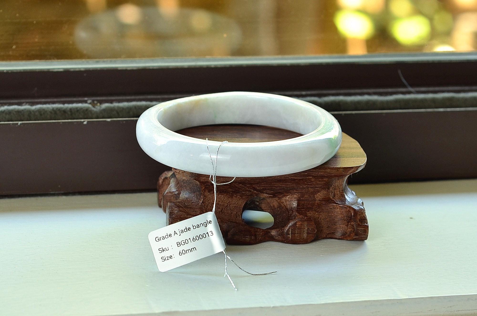 Natural Burma jade bangle, genuine stone, no treatment, Grade A jadeite. Please make sure you ordered the right size. Natural jade has natural stone veins. Please zoom in and watch the details
